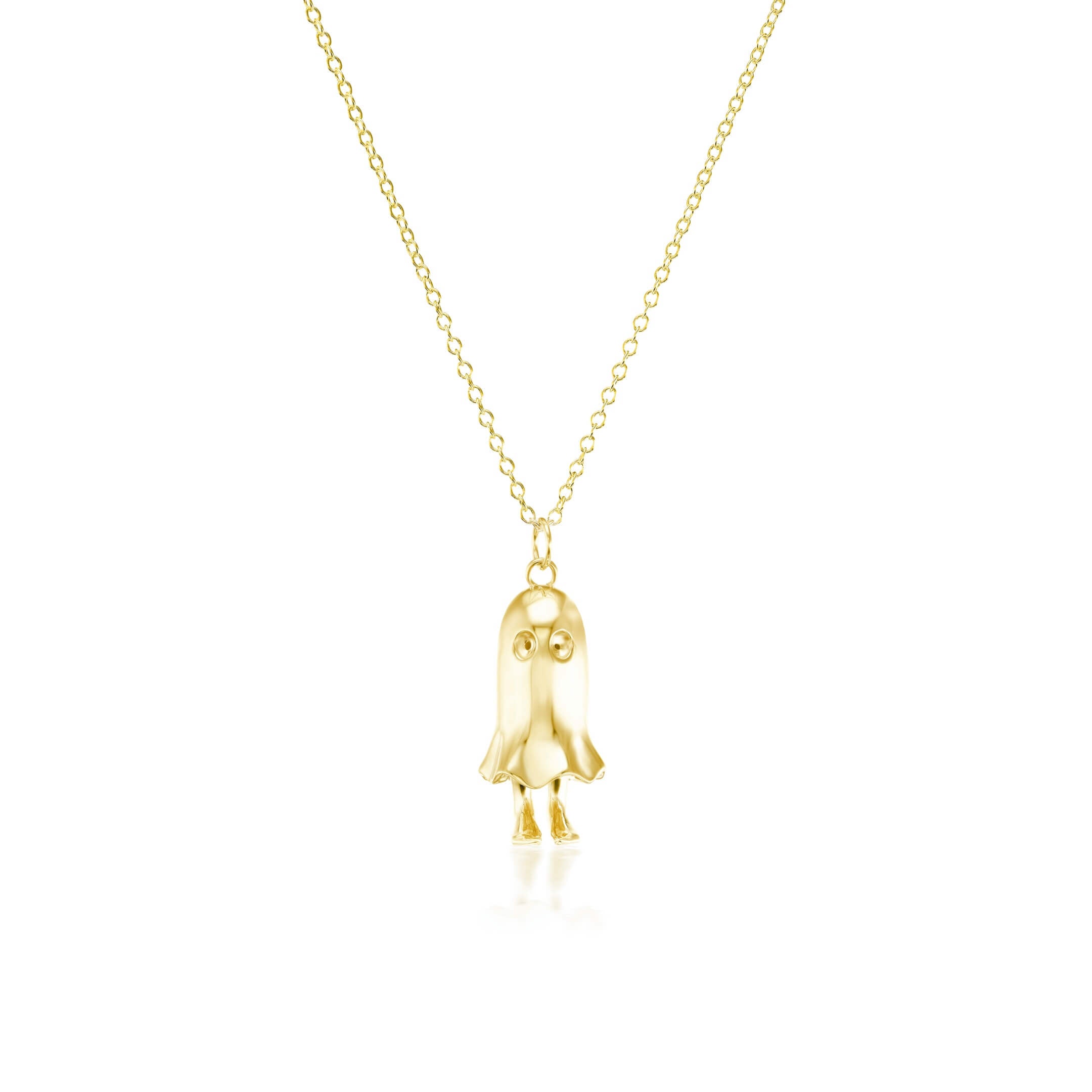 Solid 10k yellow gold ghost pendant on oversized bale or pendant enhancer (+$125). Stands approx 18mm tall.