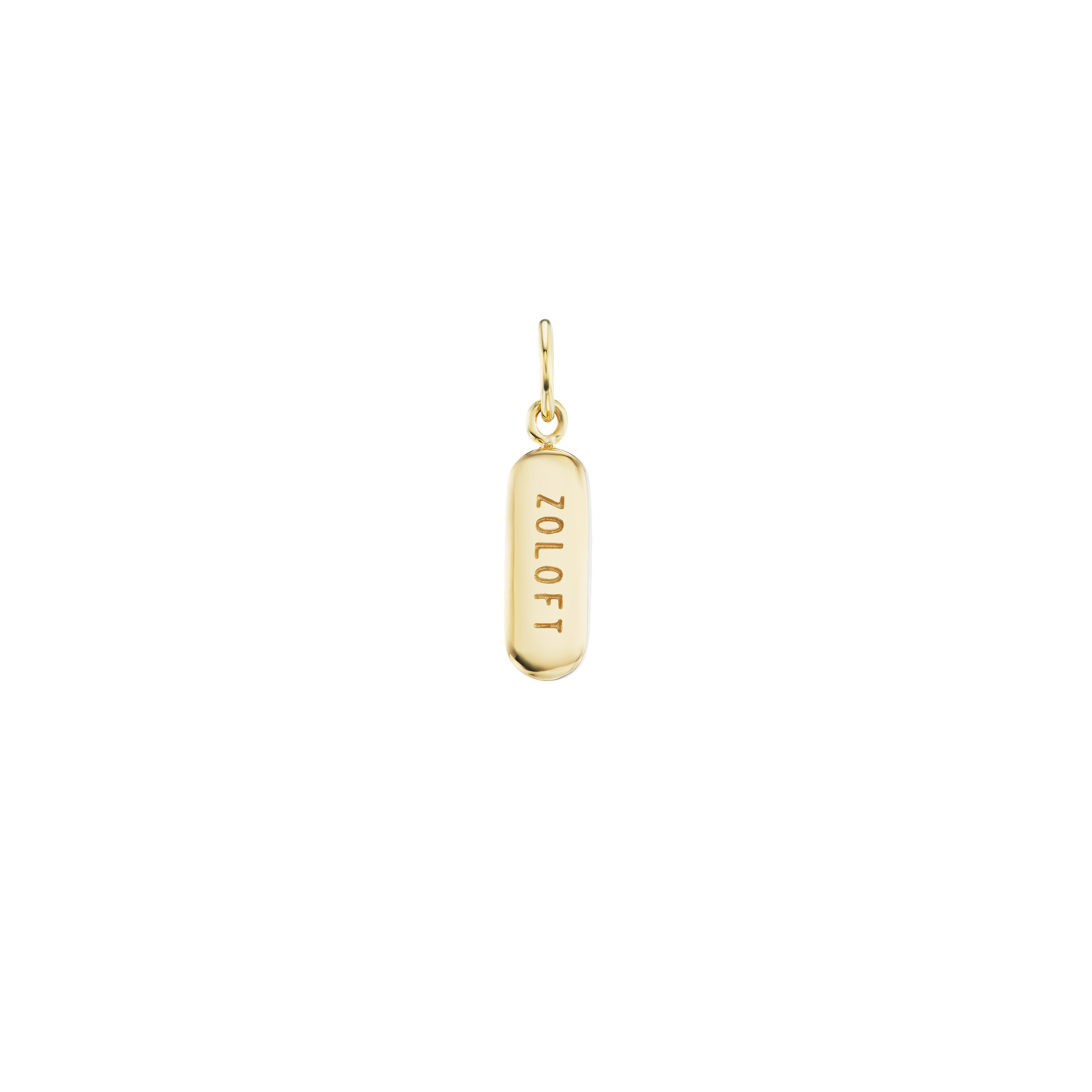 Crafted in heirloom quality 14k, these solid baubles were inspired by the popular SSRI “Zoloft”. Wear your daily medication alone or in a necklace stack to show others that there's nothing shameful in prioritizing your mental health.