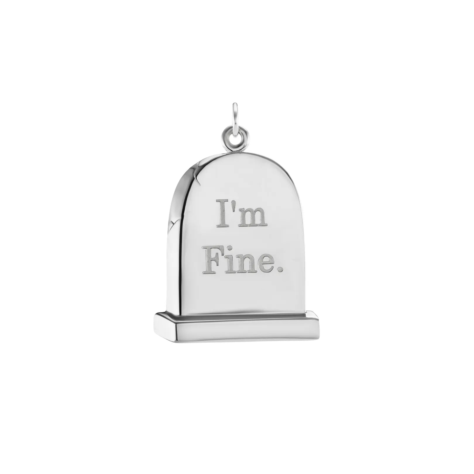 Sterling Silver Gravestone pendant on large bale or pendant enhancer (extra fee). Available on a 24” silver cable chain with lobster clasp closure (sold separately). Pendant is approximately 30mm high.