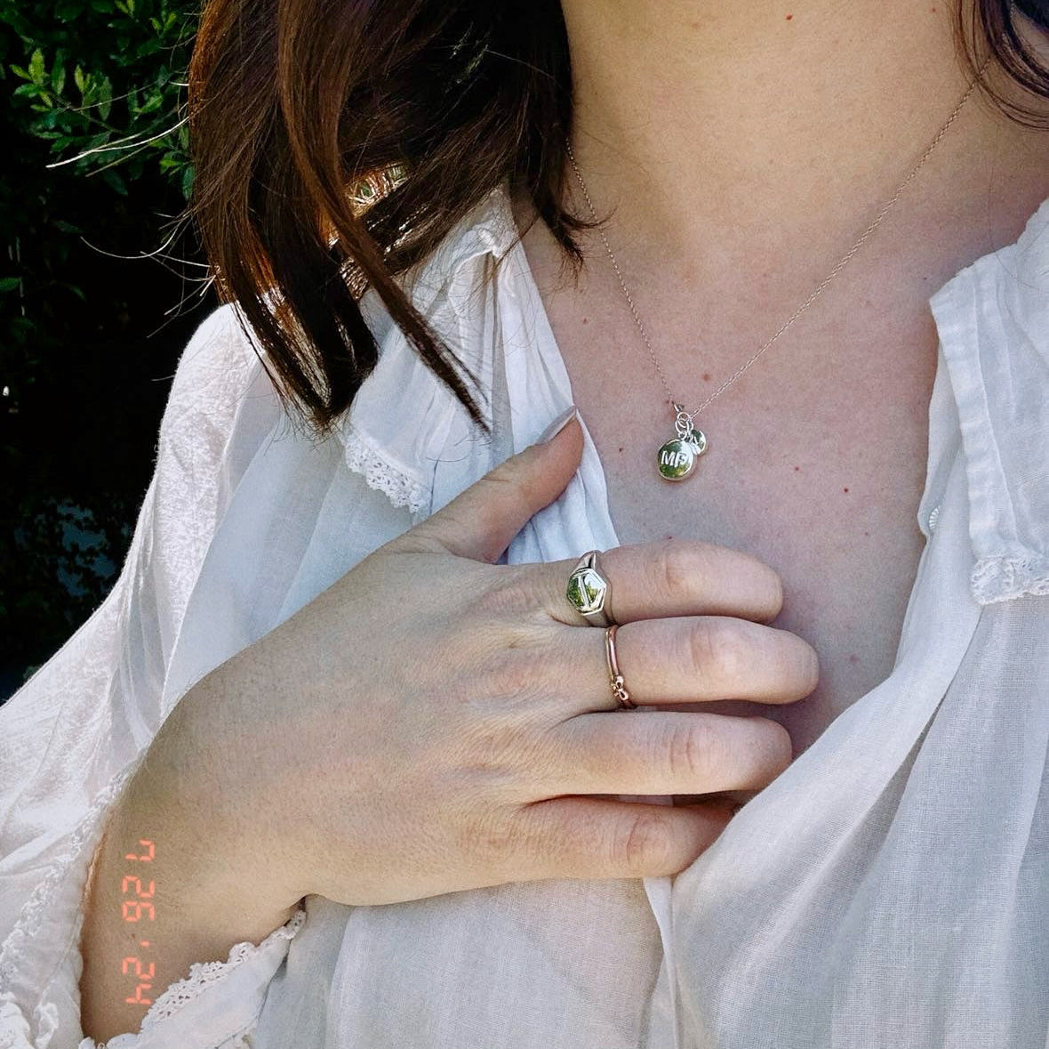 Cast in solid 925 silver, our unisex Miso Signet is inspired by the abortion pill mifepristone, a frequent part of the national conversation. Wear it stacked with our Mifo Signet or on a pinky to show others exactly where you stand. Also available in 14k gold.